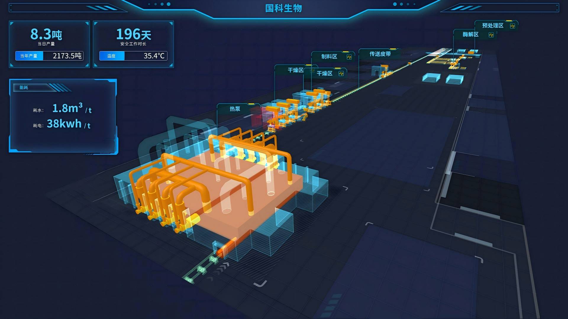 平台将执行大生产系统小模型给出的决策建议,如调整热泵设置温度、冷侧使用地下水源还是环境空气源,是否使用太阳能进行辅助制热,是否将热量盈余工段的热量进行流转利用等。